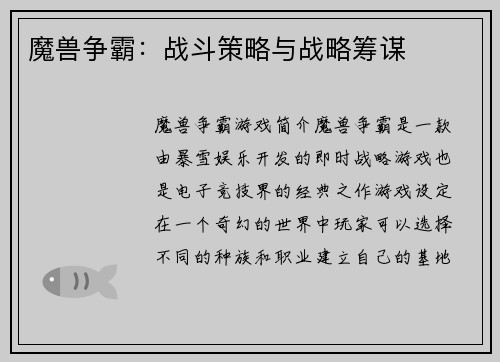 魔兽世界怀旧服技能栏调整 引言: 魔兽世界怀旧服的推出让许多老玩家重温了经典的游戏体验。与现代版本相比,怀旧服的技能栏设计存在一些不便之处。本文将从多个方面探讨如何调整怀旧服的技能栏,以提升游戏的乐趣和便利性。 1. 增加技能栏的容量 怀旧服的技能栏容量较小,限制了玩家同时使用的技能数量。为了解决这个问题,可以考虑增加技能栏的格子数目,使玩家能够更方便地组织和使用技能。这样一来,玩家就能更灵活地应...