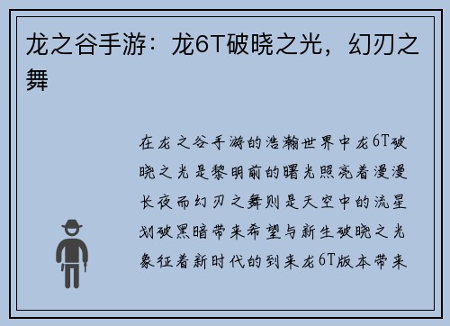 1. 龙人湮灭天赋的介绍 龙人湮灭天赋是魔兽世界中一种强大的输出天赋,适用于龙人职业。该天赋注重技能的爆发输出和持续输出,能够在战斗中造成巨大的伤害。下面将详细介绍如何最大化龙人湮灭天赋的输出技能。 2. 技能选择 在选择技能时,应根据战斗需求和个人喜好进行搭配。可以选择一些高伤害的技能作为主要输出手段,同时配合减伤技能和控制技能,提高生存能力和战斗稳定性。常用的技能包括火焰喷射、龙息术、烈焰风暴...